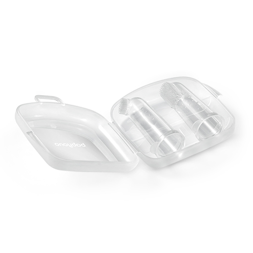 Нежната грижа за оралната хигиена започнува од првите месеци. Овој сет од две силиконски четки за прсти е идеален за одржување на чистотата на бебешката уста и правилна нега на првите забчиња.
