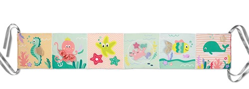 ✔ Може да се прицврсти – Книгата може да се заврзе на креветче, што ја прави совршена играчка за време на спиење или игра.