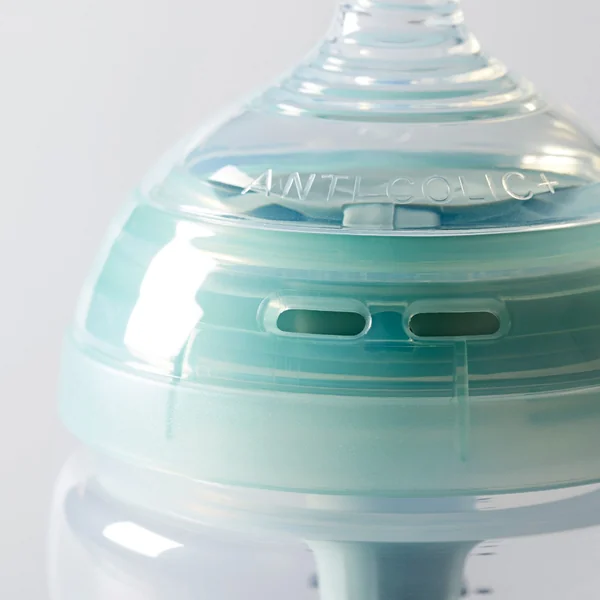 *Антиколик плус – Системот со цевка е специјално дизајниран за да помогне да се намалат воздушните меурчиња во млекото, да овозможи лесно хранење и воедно го намалува ризикот бебето да внесе воздух за време на хранењето.Кога детето почнува да пие, воздухот поминува преку специјалните отвори, низ цевката и излегува од неа во долниот дел од шишето.На овој начин воздухот целосно го заобиколува млекото.Благодарение на ваквиот систем бебето нема да голта воздух а со тоа ќе се намалат грчевите..