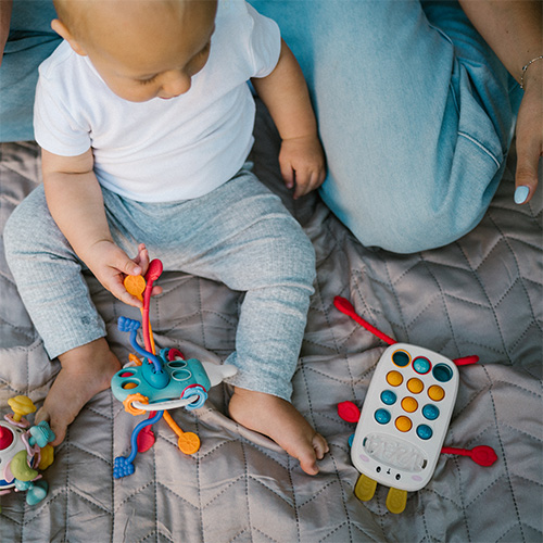 Мултифункционална сензорна играчка дизајнирана да го поддржи развојот на вашето бебе уште од најмала возраст. Оваа интерактивна играчка ги стимулира моторните вештини, ја подобрува координацијата на движењата и ја зајакнува флексибилноста на малите прстиња.