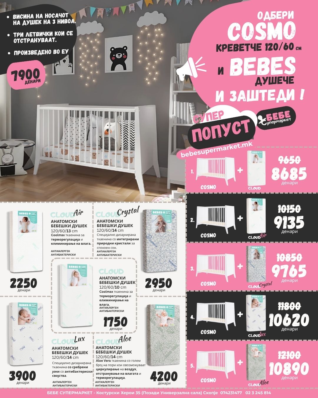 СУПЕР ПОПУСТ! Дрвено креветче Cosmo 120/60cm + душек