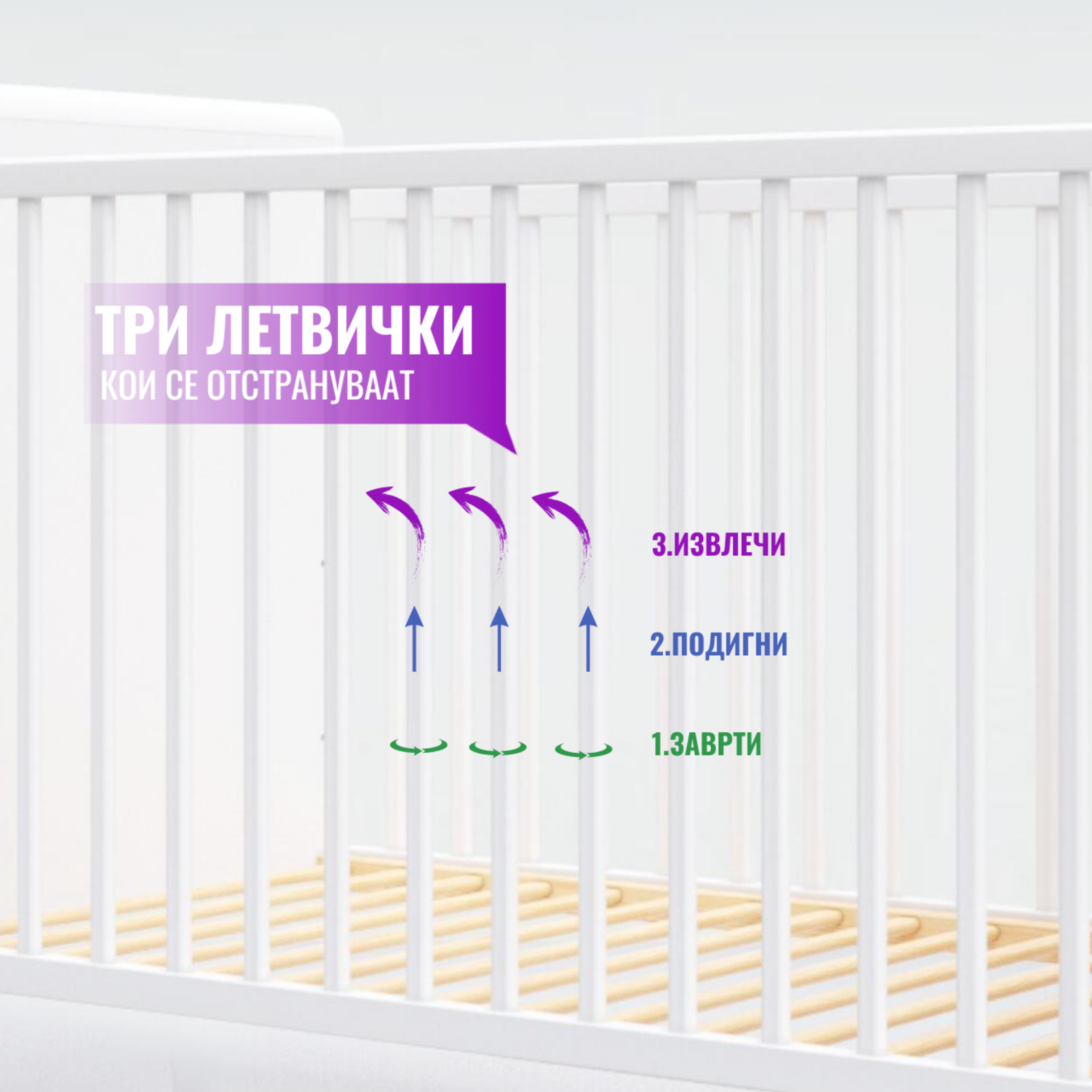 ✔️ Три летвички кои се отстрануваат: Овозможува вашето дете самостојно да влегува и излегува од креветчето.